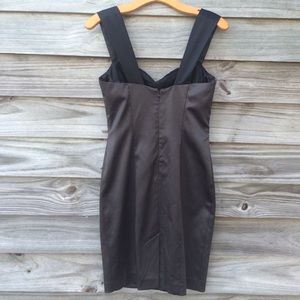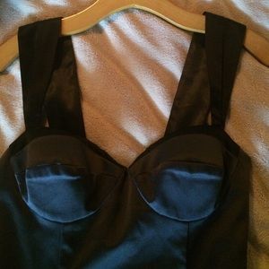 Charcoal and black dress. Built in bra.16 inches armhole to armhole. 13.5 inches at waist. 17 inches at hips. 35 inches shoulder to hem. Fully lined. Some stretch. Gorgeous!