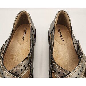 Terrikat Women's Metallic Silver Leather Mary Jane Shoes Loafers Comfort Slip On
