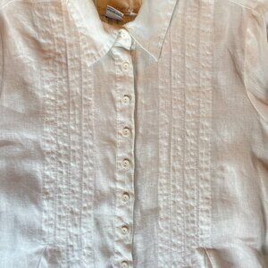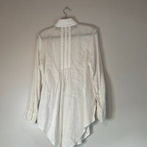 Territory Ahead Long White Linen Pintuck Button Up Tunic Womens Size S Lagenlook