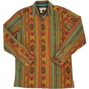 Territory Ahead Men's Aztec Southwest Corduroy Stripe Shirt Tan/Turquoise Small