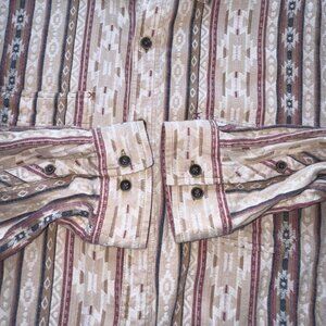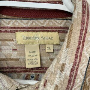 Territory Ahead XL Button-Up Long-Sleeve Men’s Shirt Beige/Burgundy 100% Cotton