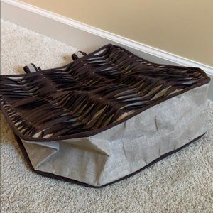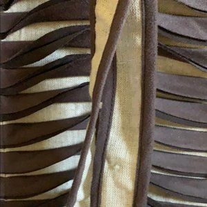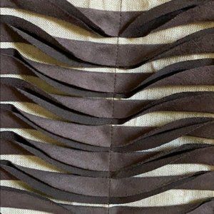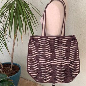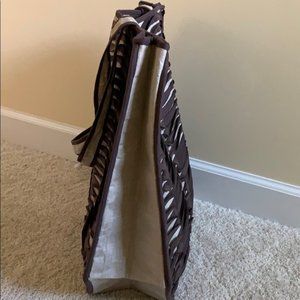 (2) Fabulous new tote from Territory Ahead. There is no material tag but Territory described as "A true statement piece, our Sun and Shade tote is a work of Art that will hold everything and then some. The linen and polysuede applicate creates a striking wavy pattern of light and shadow". This is a large size. Height approx 19". The width across top is approx 16" across and then widens further down. Price not marked on plastic bag. Retailed $169.