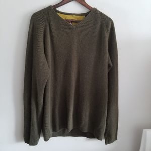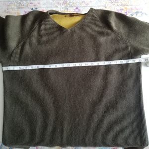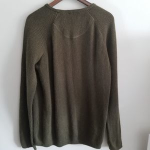 Territory Reserve Cashmere Silk Cotton Blend V-Neck Ribbed Sweater Green XL