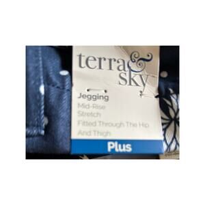 Terrra and Sky Womens Blue White Floral Jegging Full Length 3X NEW