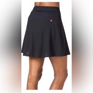 New! It's made of a lovely combination of performance fabrics and is constructed with a higher rise, supportive waist and inner short with Italian chamois that can handle rides of any duration. A chevron skirt is attached at the low waist to minimize bulk but add feminine energy. Skirt shape is contoured in front and more free flowing in the rear to avoid saddle interference. Laying flat the waist is about 20 inches and the skirt is about 18 inches. The shorts underneath is 19 inches long and the inseam is about 9 inches. Comes from a smoke free home.