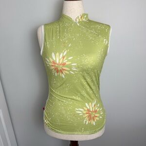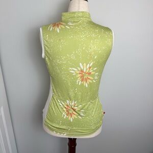 Embrace a fresh look with this stylish floral green sleeveless top designed for biking but could be for any activity. Has a zipper in the front near the collar. Excellent condition!