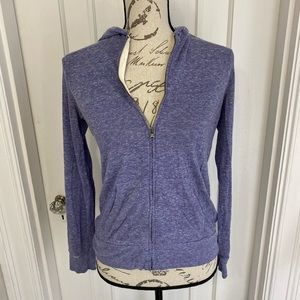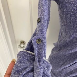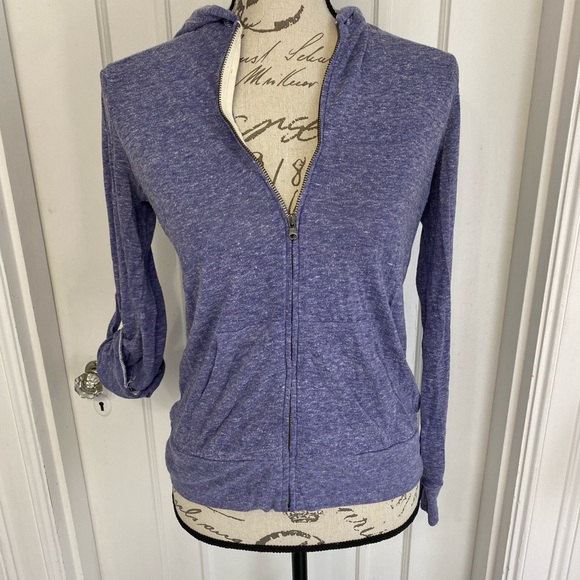 Light weight terry cloth jacket. The jacket is a acid wash purple color. Has the ability to be long sleep or 3/4