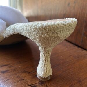 Terry Cloth Neutral Women's Heeled Mules Open Toe Sandals Toweling Heels Size 8