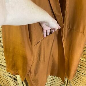Terry Lewis 100% Silk Duster Coat Rust Copper Long Jacket 1X autumncore