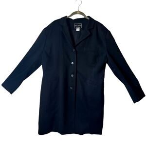 This vintage pantsuit from Terry Lewis is a sleek and comfortable addition to your wardrobe. The suit is made from a durable polyester-spandex blend for a smooth fit, with a fully lined interior for added comfort. The jacket has a classic button-down design, while the matching pants offer ease of movement. Perfect for both professional and formal settings.