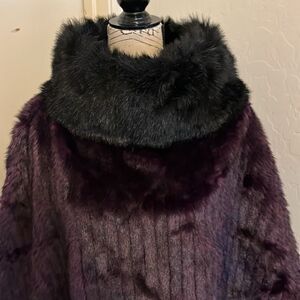 Terry Lewis Faux Fur Purple Black Collar Area Pullover Poncho. Brand new with tags, OS-one size, labeled P-please refer to approximate measurements for best representation.