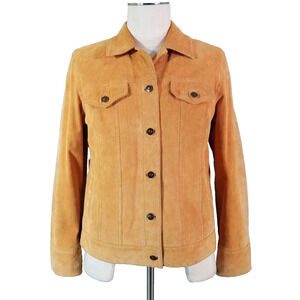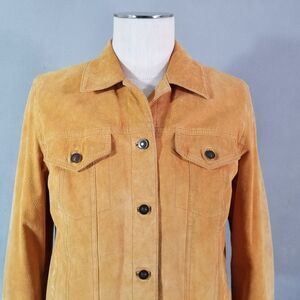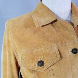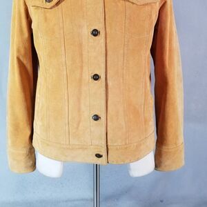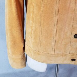 Terry Lewis Luxuries Suede Leather Trucker Jacket Women's Medium Tan Distressed