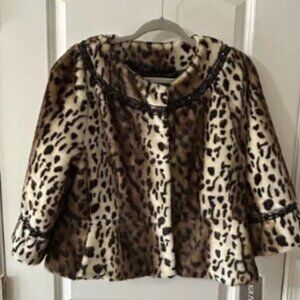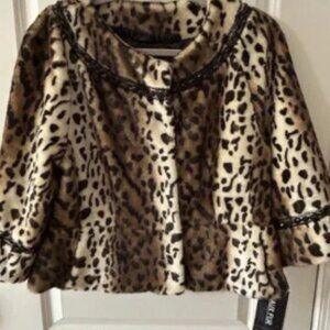 Terry Lewis Luxuries Vintage M Cheetah Animal Print Faux Fur NWT Peplum Coat