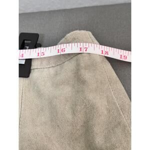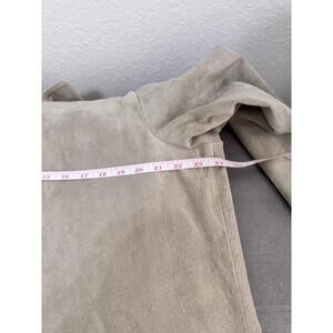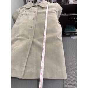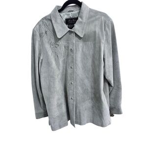 Features: Sage color, All leather, Button-up, Floral embroidery, Collared, Suede style