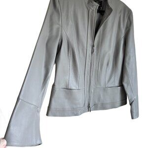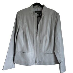 Terry Lewis Sleek Minimalist Style in Light Gray Leather Jacket Sz L