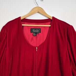 Terry Lewis Velvet Jacket Sz 3X Red Zip Front Long Sleeve Lined Holiday Festive