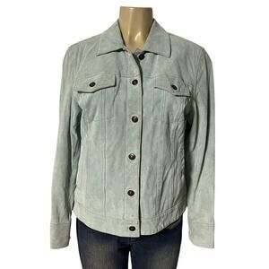 Terry Lewis Women's Suede Jacket Button Pockets Powder Blue Size Medium