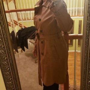 awesome preowned but worn minimally if that real genuine leather trench...cognac tannish color...impeccable condition...size medium...may have some blemishes from wear but none found...fits 8 in my opinion.. NOT ZARA BUT HERE FOR EXPOSURE. measurements posted in my other listing