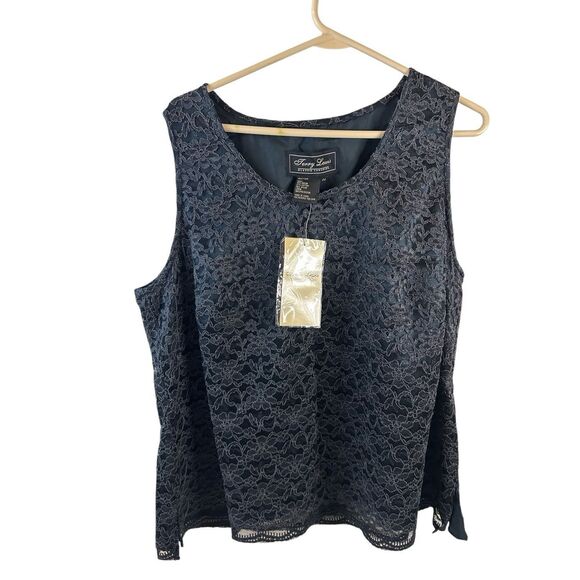 Terry Lewis size 20 2x black lace overlay tank rayon blend new. measures 23" chest, 25" long.