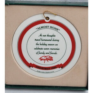 The Terry Redlin Christmas Ornament titled "Almost Home," released in 1994, captures the essence of a serene winter evening, evoking a sense of nostalgia and warmth that is perfect for the holiday season. This exquisite ornament features a beautifully detailed depiction of a cozy cabin nestled among snow-laden trees, with soft, glowing lights emanating from the windows, suggesting a welcoming atmosphere. The intricate craftsmanship showcases Redlin's signature style, characterized by rich colors and a masterful portrayal of nature, making it a cherished addition to any holiday décor. Measuring a convenient size for hanging on a tree or displaying on a mantel, this ornament not only serves as a festive decoration but also as a timeless keepsake that can be passed down through generations, reminding us of the simple joys of home and family during the most wonderful time of the year.