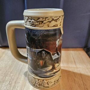 "The stein features a scene of ducks flying over a sunset landscape, painted by renowned wildlife artist Terry Redlin."