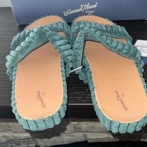 Comfy terry sandals, contoured , supportive footbed. Turquoise /teal color. NWT