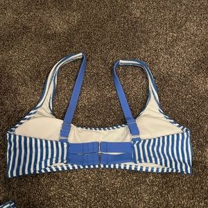 Blue and white terry cloth bikini. Only worn a few times, no pilling on bottom. Feel free to ask me any questions or make an offer. Please look at all pictures before purchasing!