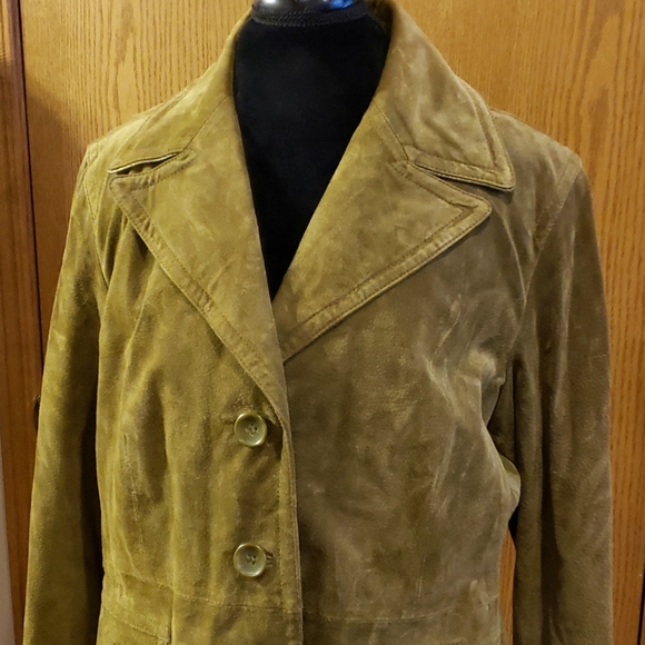 Excellent condition sage green jacket suede size large petite blazer with shiny green trims