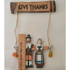 Terry's Village Wooden Folk Art Thanksgiving Holiday Hanging Sign Pilgrims Decor