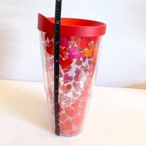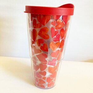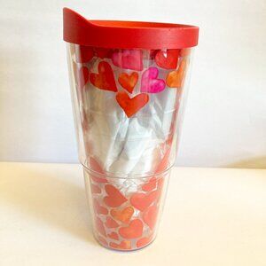 Tervis Insulated Tumbler 24 oz Hearts W/ Red Lid EUC clear Valentines Travel Cup