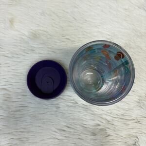 BPA-free and dishwasher safe 16oz tumbler with removable purple lid. Great condition!