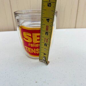 Tervis Tumbler 12 oz. “Sex Relieves Tension” Insulated Cup Red Yellow. Good preowned condition.