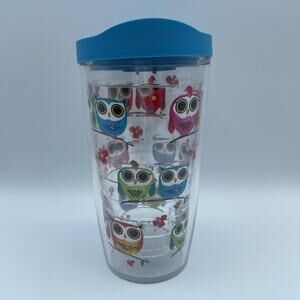 Tervis Tumbler 16oz Tumbler Multicolor Owls W/Blue Lid And Clear Cup. Condition is Used. Shipped with USPS Ground Advantage.