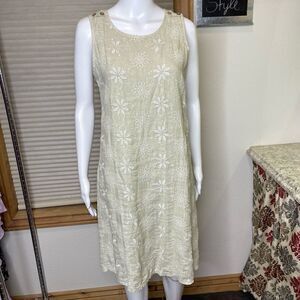 Terzo Millenio Beige Floral Embossed Linen Dress Size XS