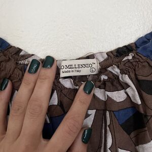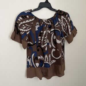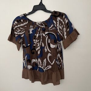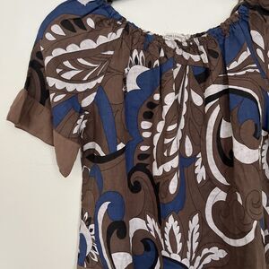 Terzo Millennio 100% Linen Ruffle Hem Tunic Top, Made In Italy, Brown Boho- L