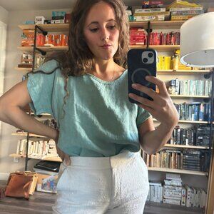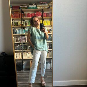 Terzo Millennio 100% Linen Top Italian Made Women's Large Button Back
