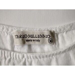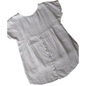 Terzo Millennio 100% Linen Tunic Button Back Top High/Low Italy White M Luxury