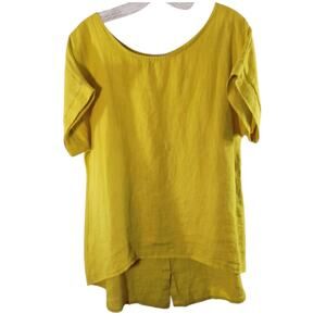 Terzo Millennio 100% Linen Tunic Top Women's Size M Yellow Short Sleeve Italy