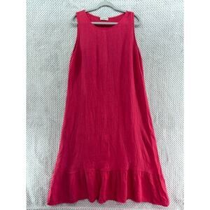 Terzo Millennio Dress Womens L Red Linen Tank Maxi Tiered Boat Neck Sleeveless