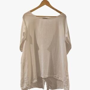Terzo Millennio Italy 100% Linen White Hi-Lo Hem Womens 1X Cuffed Short Sleeve