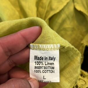 TERZO MILLENNIO Women Sleeveless 100% Linen Blouse Top Lime Eyelet Hem