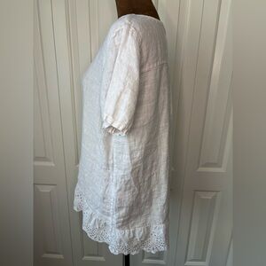 Terzo Millennio Made In Italy Linen White Eyeylet Lace Ruffle Hem Blouse