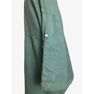 Terzo Millennio Small Linen Italy Blouse Tunic Top Long Sleeve Buttons Roll Up
