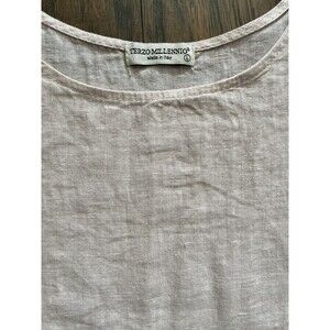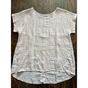 Terzo Millennio Top Large Beige 100% Linen Button Back Hi Low Hem Pullover Shirt.