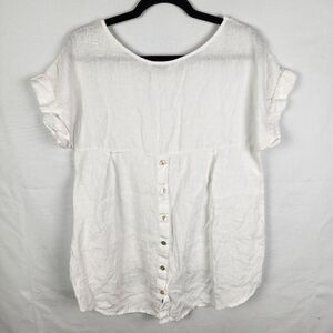 Terzo Millennio White 100% Linen High Low Button Back Tunic Size Small Lagenlook