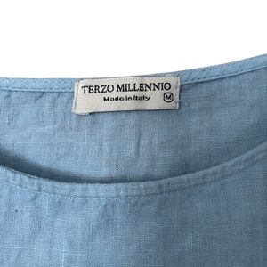 Terzo Millennio Womans Blouse Top Medium Blue Small Linen Short Sleeve Italy