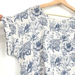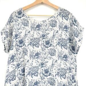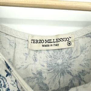 Terzo Millennio Women's Floral 100% Linen Blouse Tunic Top Button Back High Low