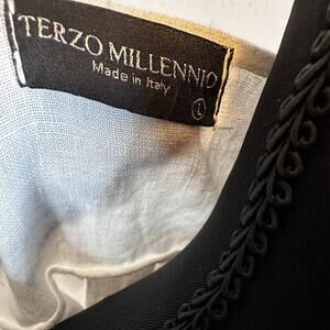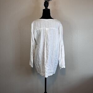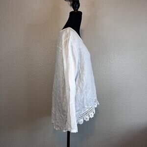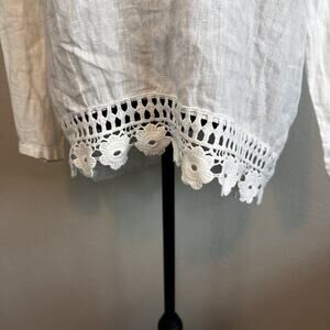 Terzo Millennio Womens White L Linen Blouse Crocheted Knit Trim Hi Lo Hem Boho