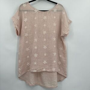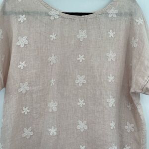 Terzo Millinnio Blush Pink Boho Embroidered Flowers Tunic Top Blouse Medium
