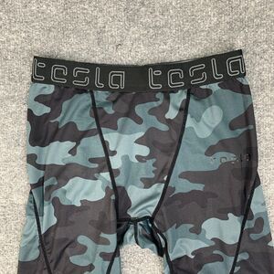 TESLA LEGGINGS MENS SMALL GRAY CAMO COMPRESSION BASE LAYER COOL DRY SPORTS PANT